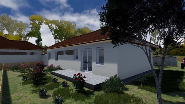 A 30cm-es Porotherm főfalakra 15cm-es Dryvit szigetelőrendszer kerül, műanyag bejárati ajtó és háromrétegű műanyag nyílászárók kerülnek beépítésre, fűtése kondenzációs gázkazánról történik, szobákban radiátorokkal, a többi helyiségben padlófűtéssel.