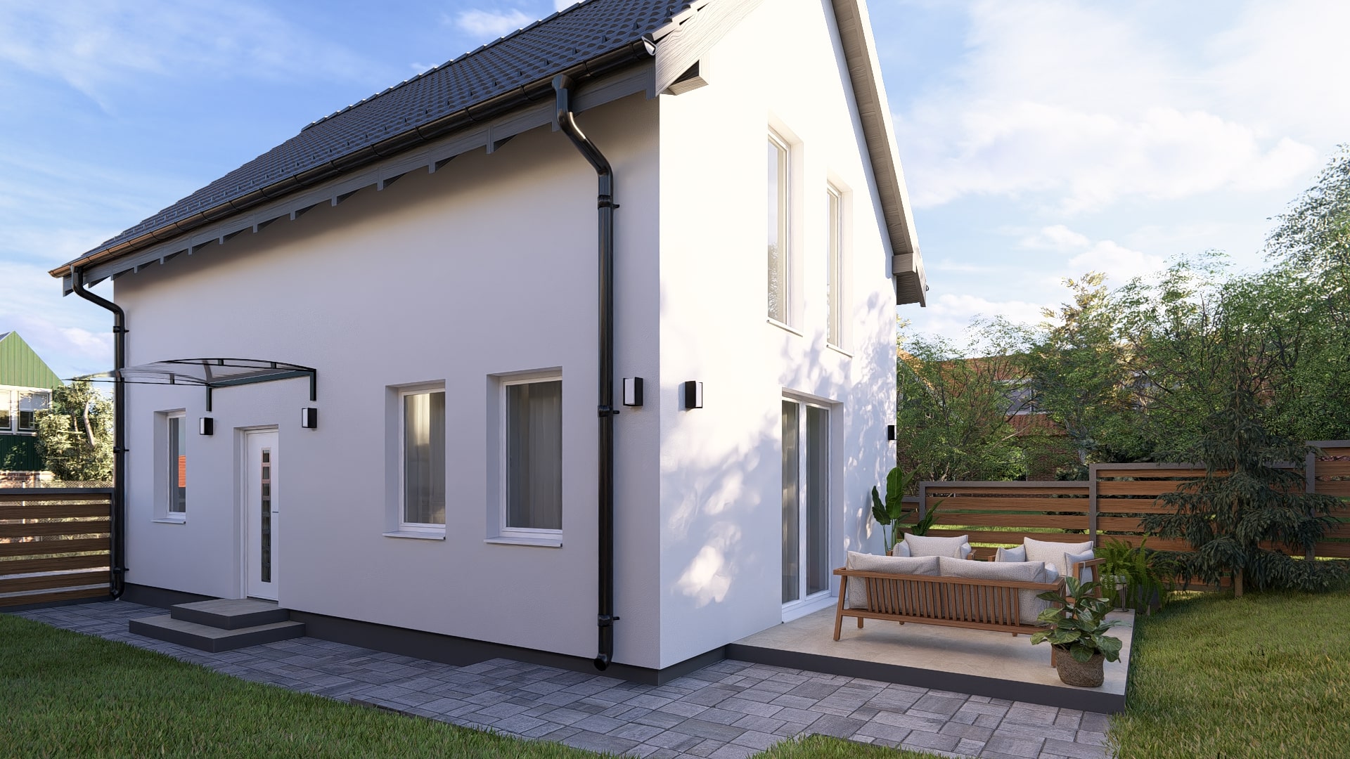 Földszinten előszoba, teraszkapcsolatos nappali-konyha-étkező, kamra, egy szoba és háztartási helyiség/fürdő kerül kialakításra. Emeleten két kényelmes méretű szoba, gardrób, közlekedő és egy fürdőszoba kap helyet.