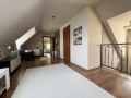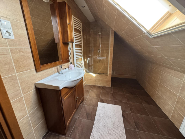 - Földszinten előtér, teraszkapcsolatos nappali-konyha-étkező, tároló, emeleten nappali, négy szoba, gardrób, közlekedő, két fürdőszoba, külön mellékhelyiség.