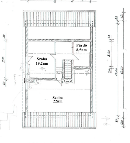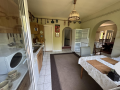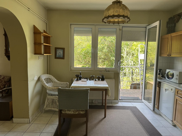 Jelenleg a földszinten hatalmas nappali-étkező, konyha, kamra, egy szoba és egy zuhanyzós fürdőszoba került kialakításra. Tetőterében pedig két kényelmes méretű szoba valamint egy fürdőszoba kapott helyet.