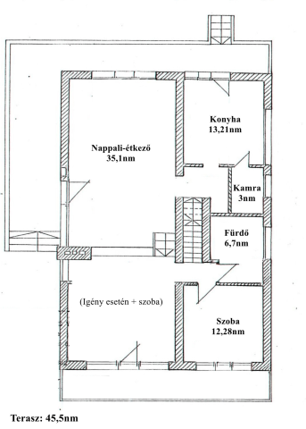 Praktikus elosztásának köszönhetően minden helyiség tágas, világos. Igény esetén a nappaliból egy teraszkapcsolatos plusz szoba leválasztható.